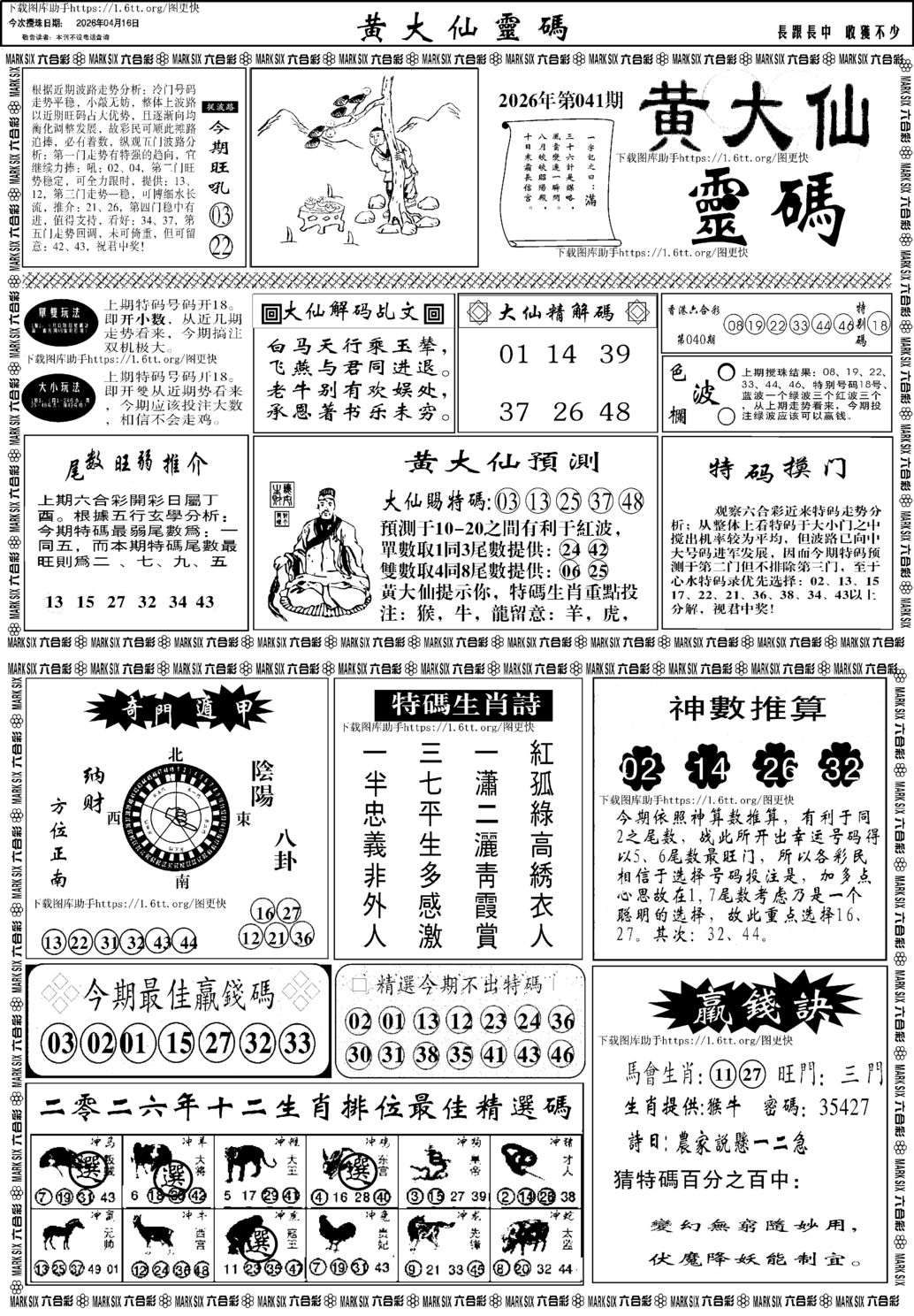 s023 黄大仙灵码二合一
