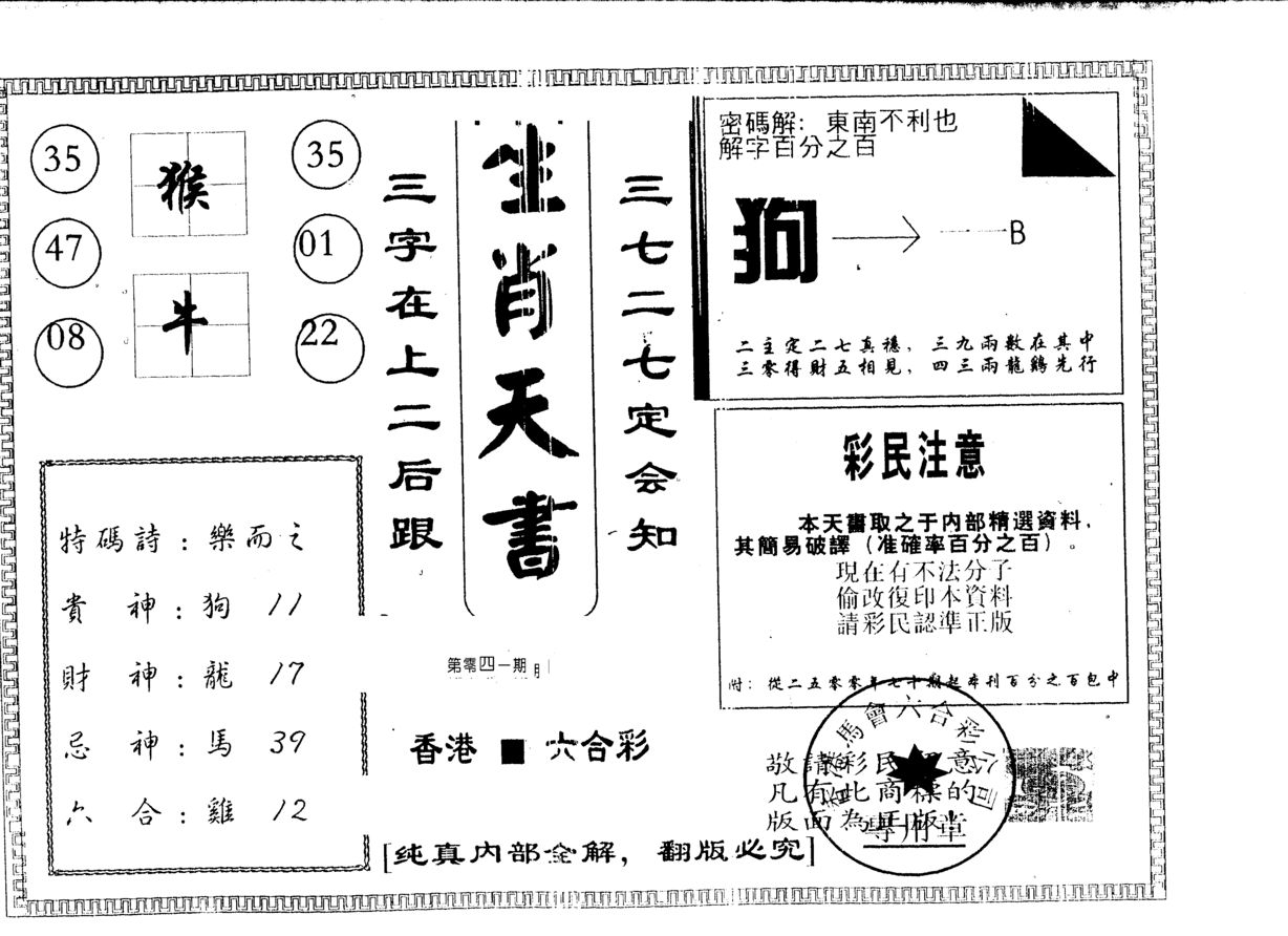 a598 生肖天书