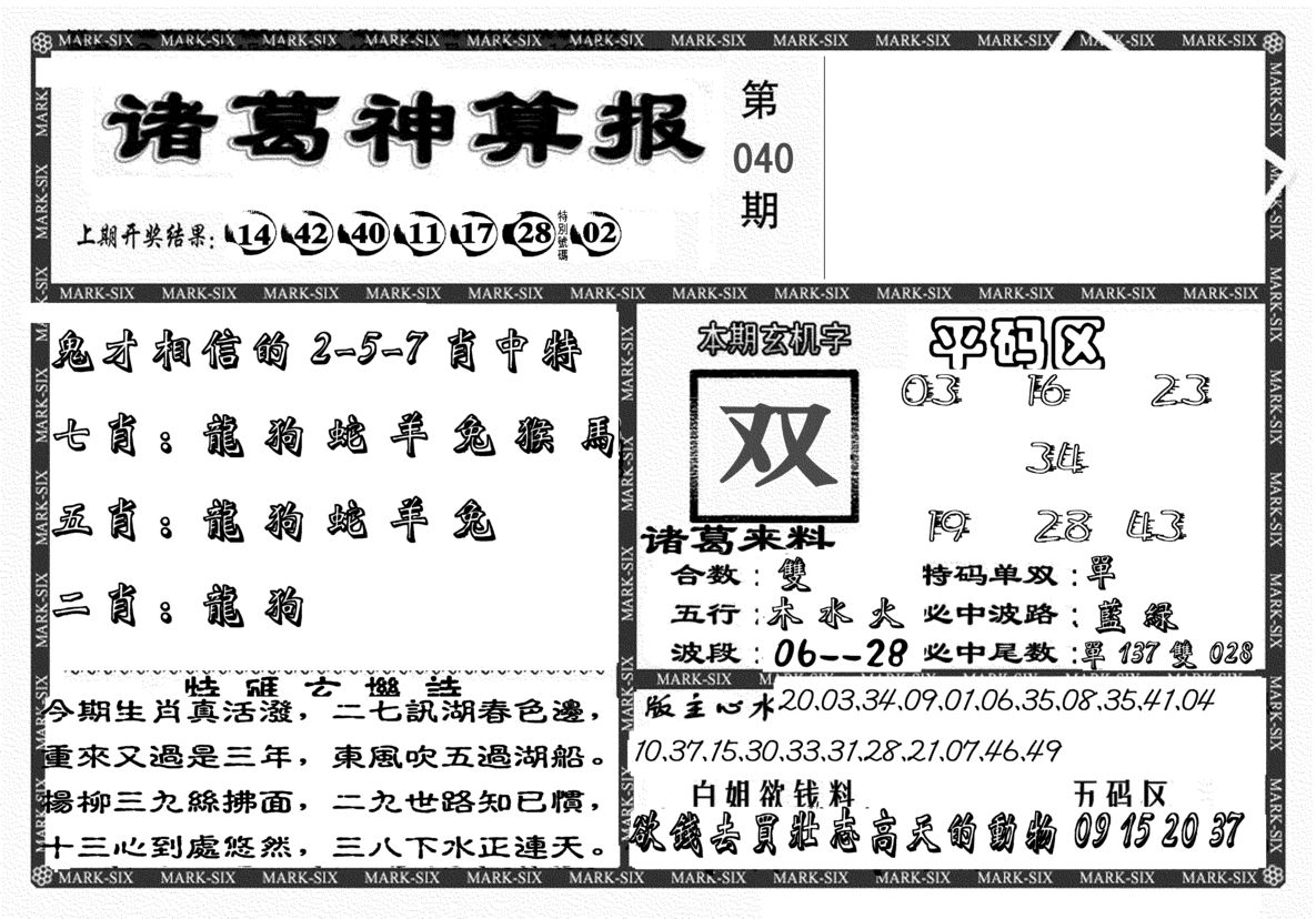 j029 六合彩特码包中