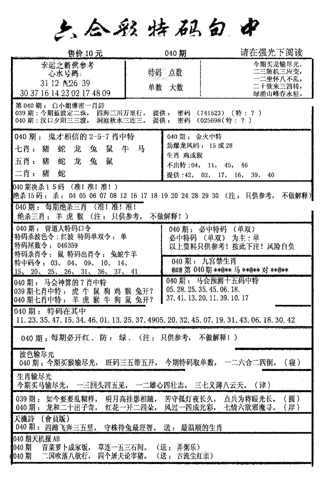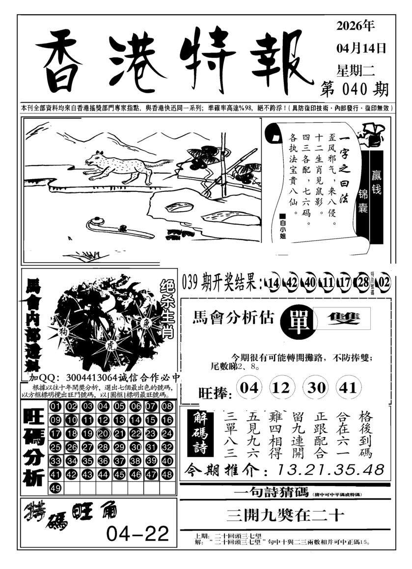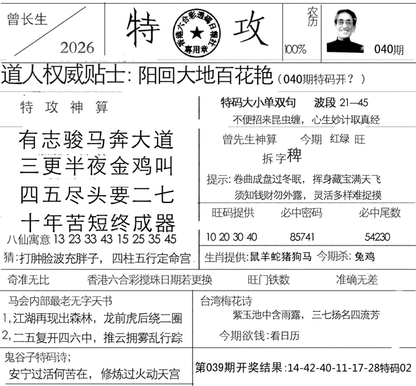 j041 曾道人特碼快報