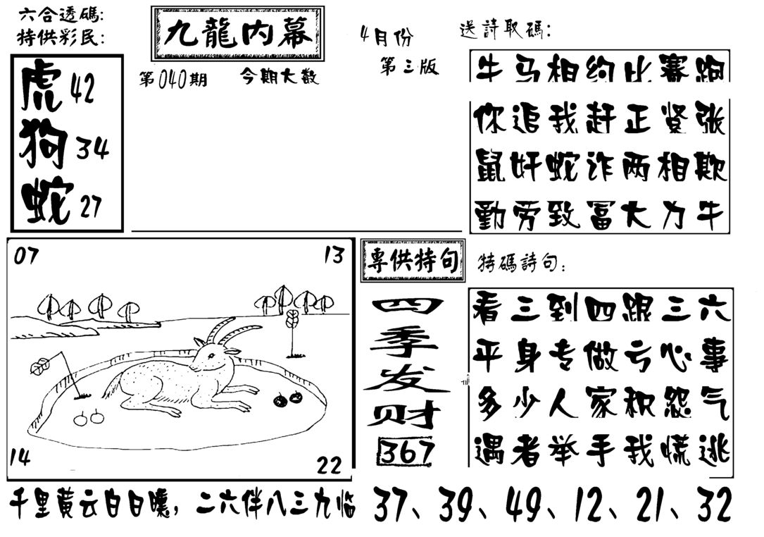j037 今日抓特码A